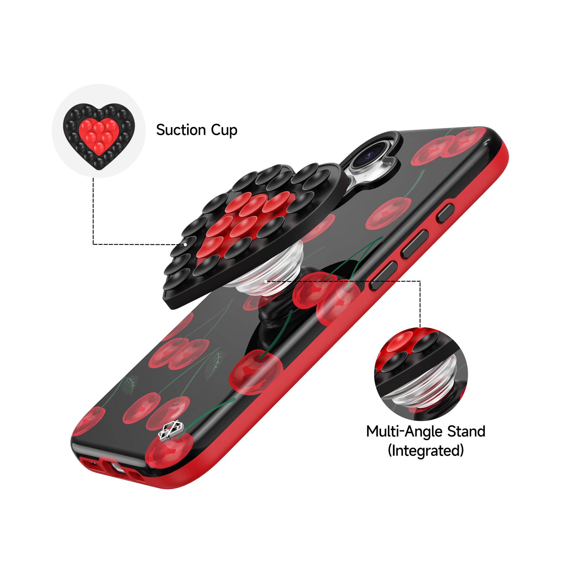 - The built-in suction cup on the back not only adheres securely to various surfaces but also functions as a phone stand, adding convenience to your daily life