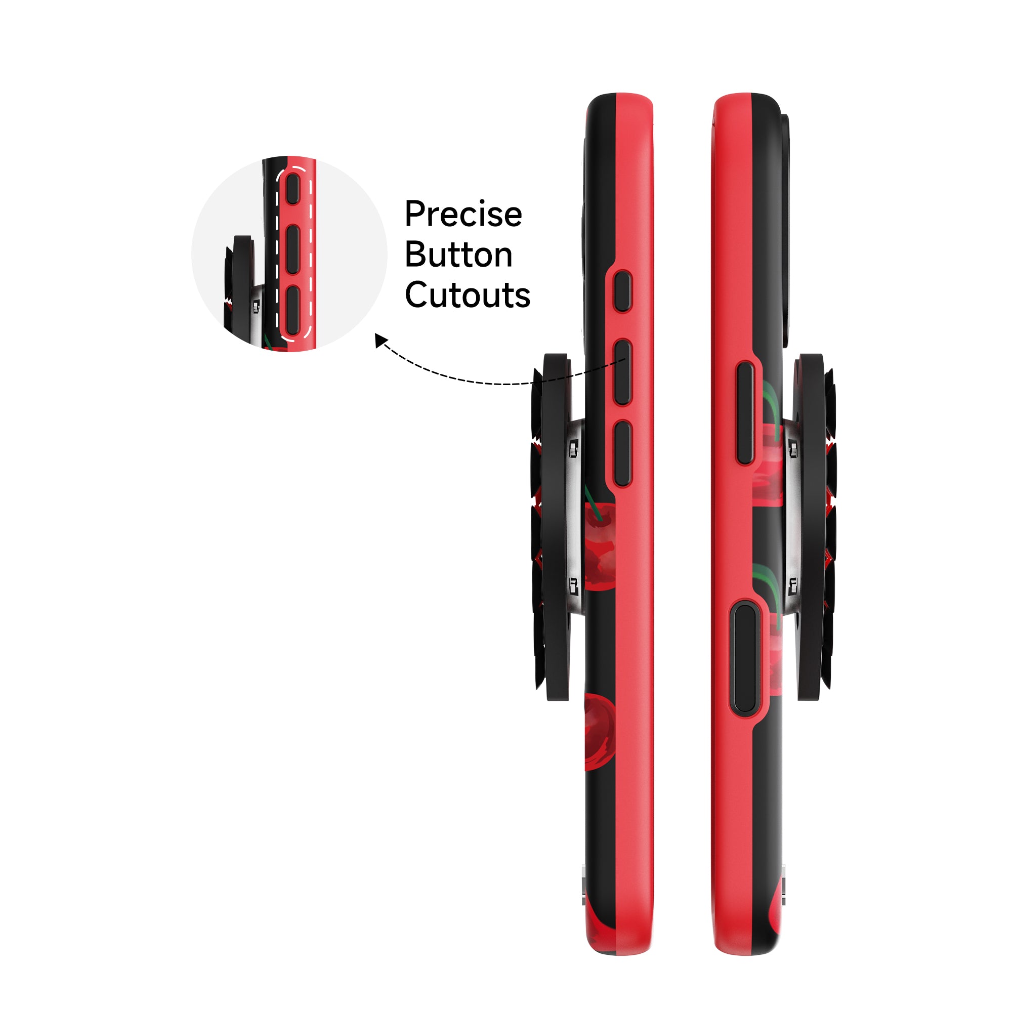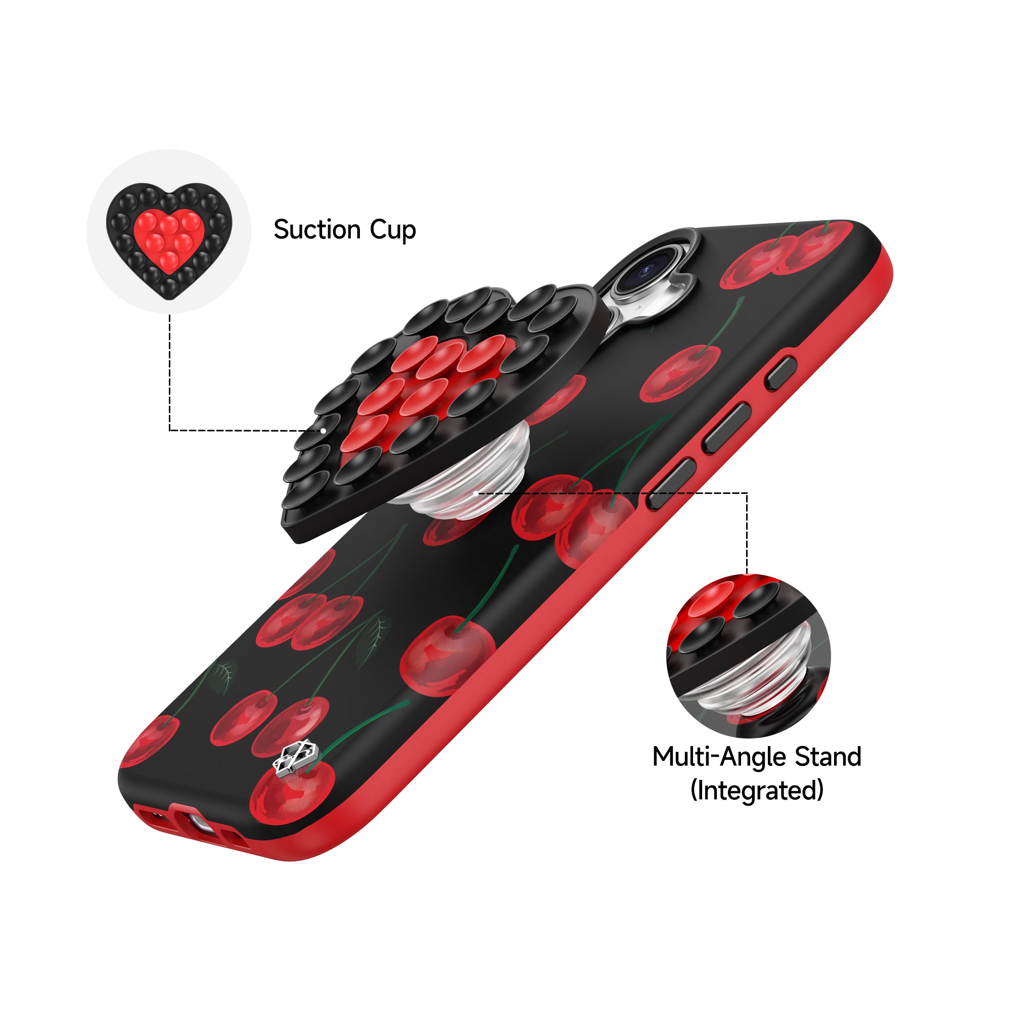 - The built-in suction cup on the back not only adheres securely to various surfaces but also functions as a phone stand, adding convenience to your daily life