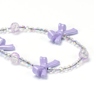 Crafted with acrylic cream bows/beads, translucent glass seed beads and sparkling faceted crystals